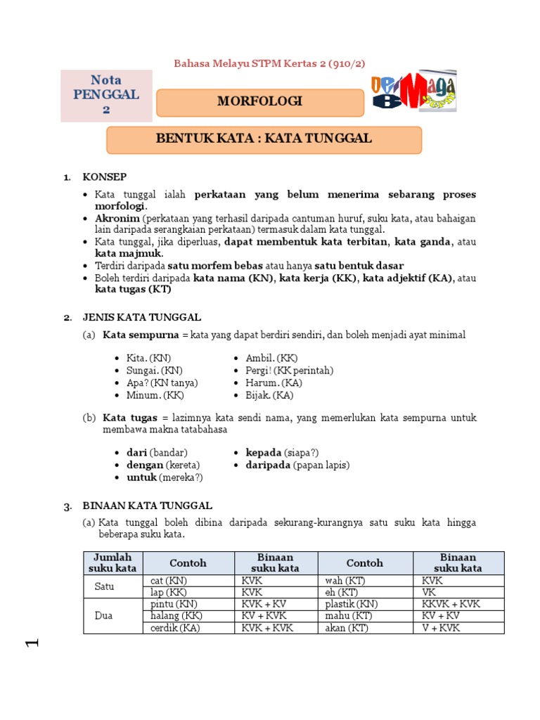 Penggal 2 Bentuk Kata Kata Tunggal Pdf Pdf