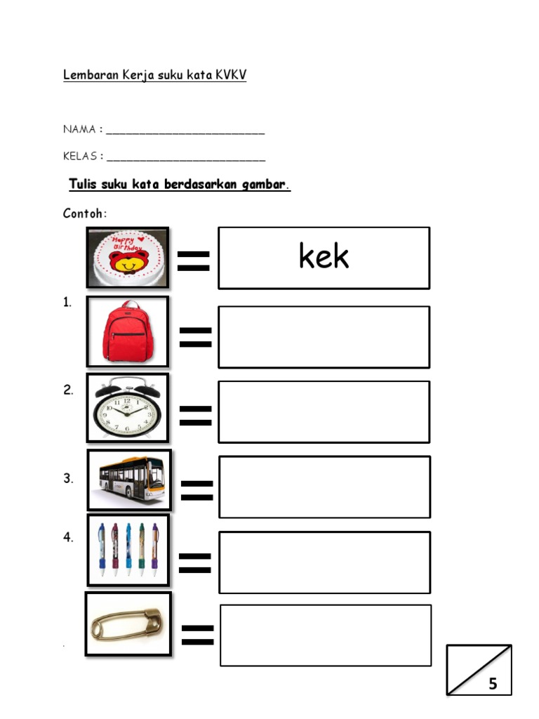 Laman Ilmu Lembaran Kerja Suku Kata Kv